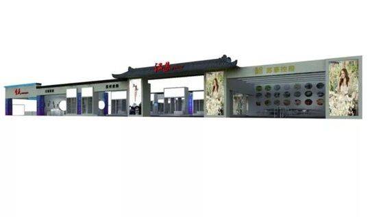 (上圖:江蘇館以水鄉(xiāng)古鎮(zhèn)門頭做造型,突出江南水鄉(xiāng)獨有魅力,館內(nèi)采用墨色風(fēng)格結(jié)合大幅寫真展現(xiàn)水鄉(xiāng)濃厚的水墨人文。)